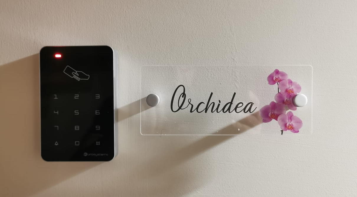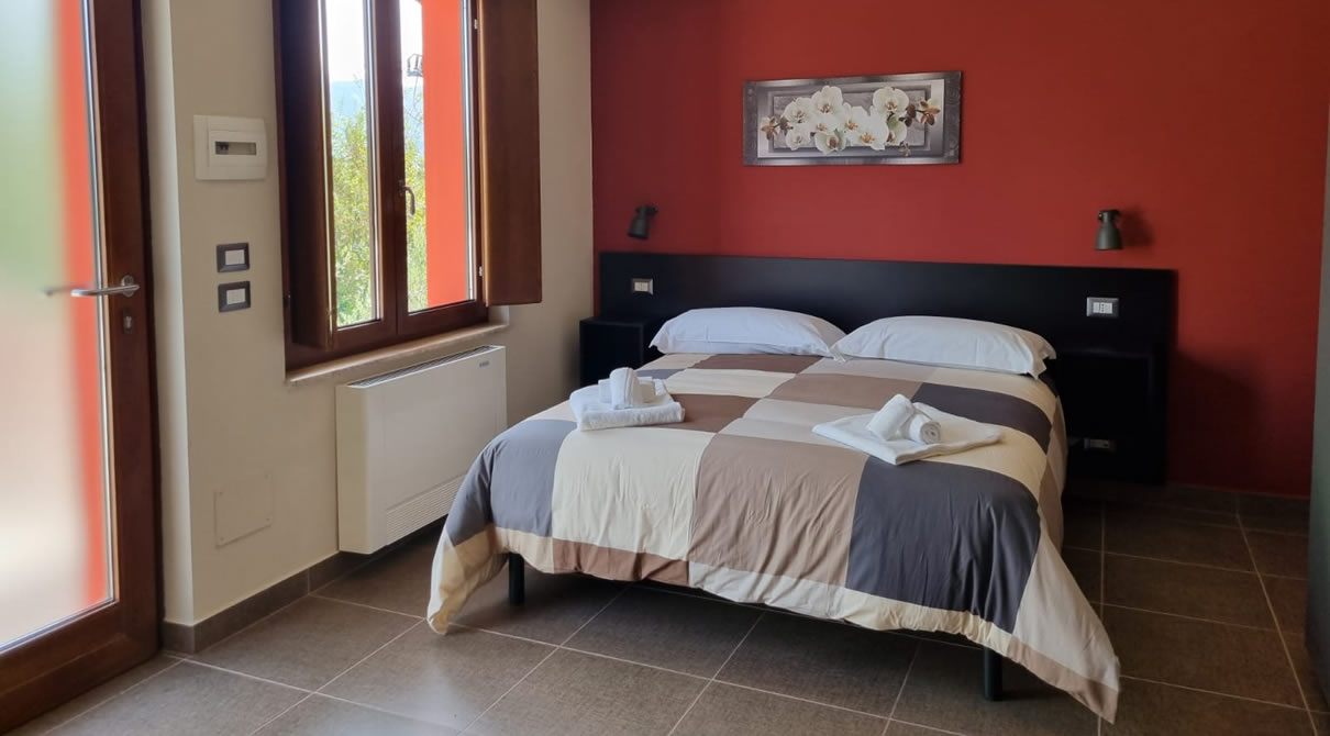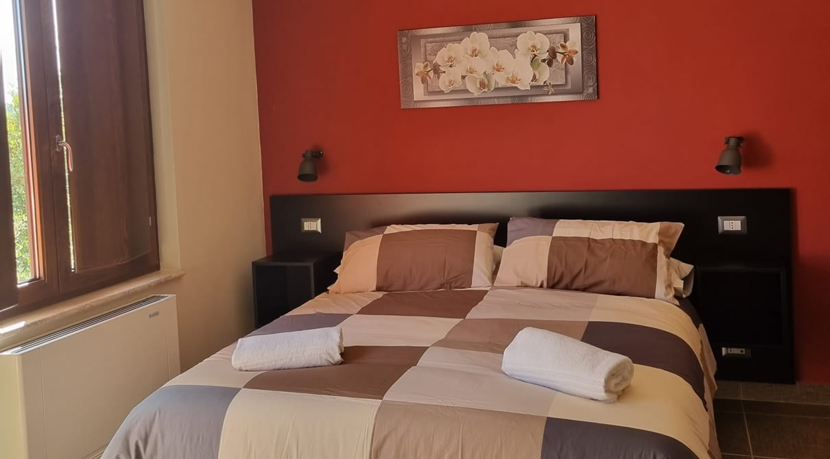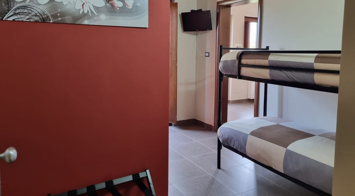 La Camera ORCHIDEA è una camera quadrupla di mq.30 con letto matrimoniale e letti a castello arredata con gusto dallo stile moderno, con balcone e finestra in doppio ambiente.