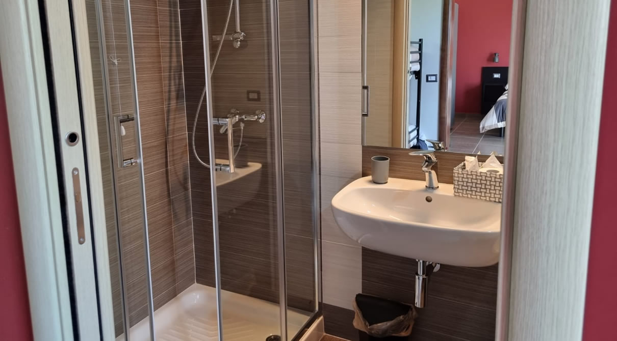 Bagno privato completo di accessori (phon, asciugamani, set cortesia e cabina doccia).